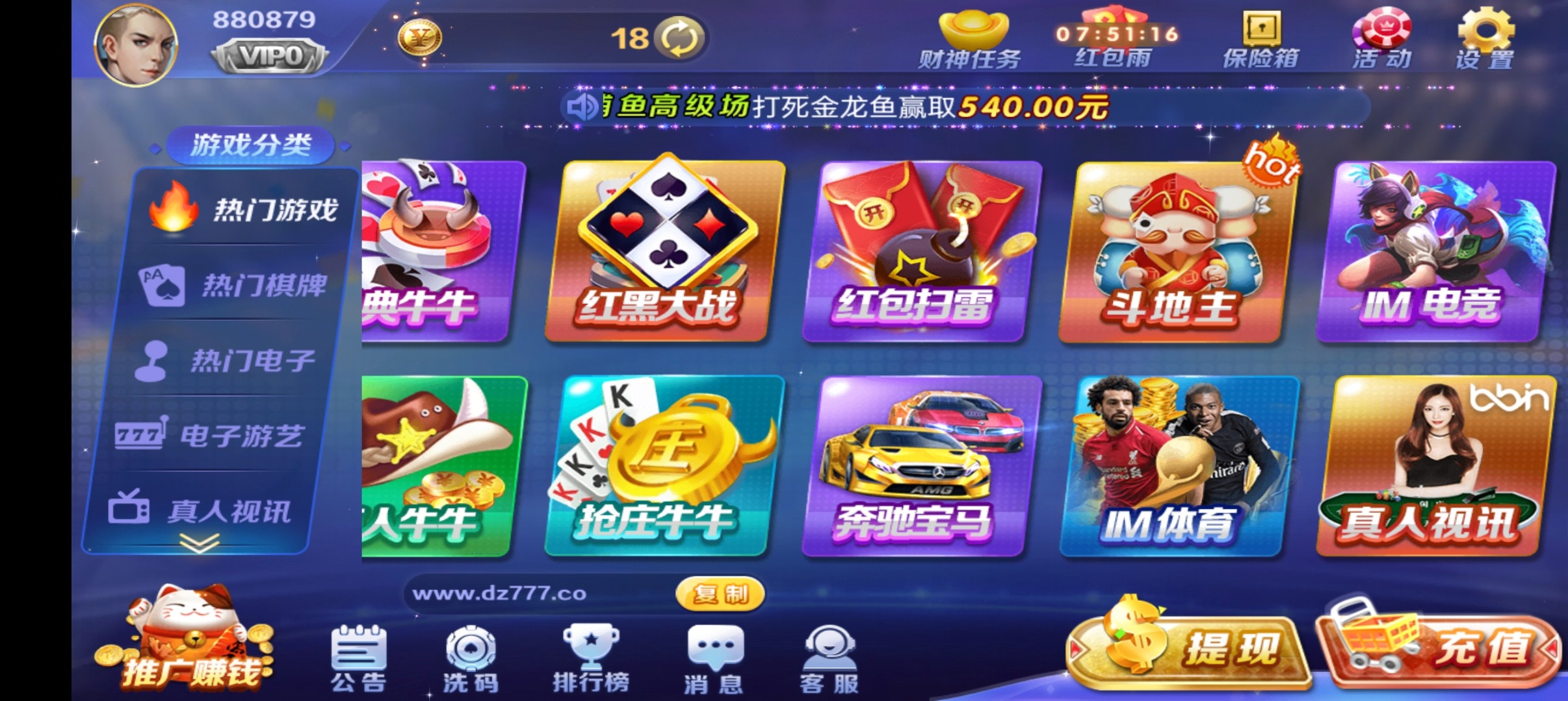 大众棋牌注册用户送18