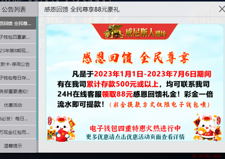 威尼斯今年累计充值领88