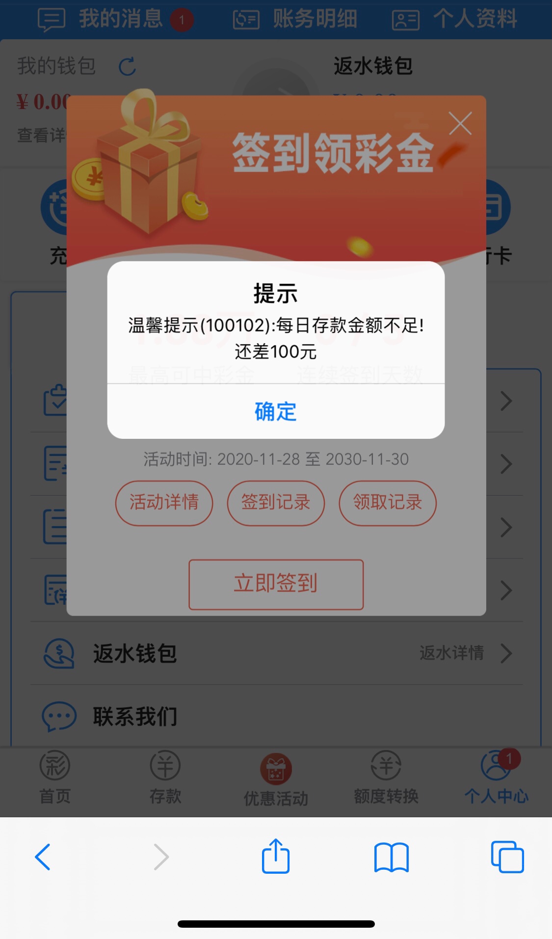 要日存100才可以签到别去了