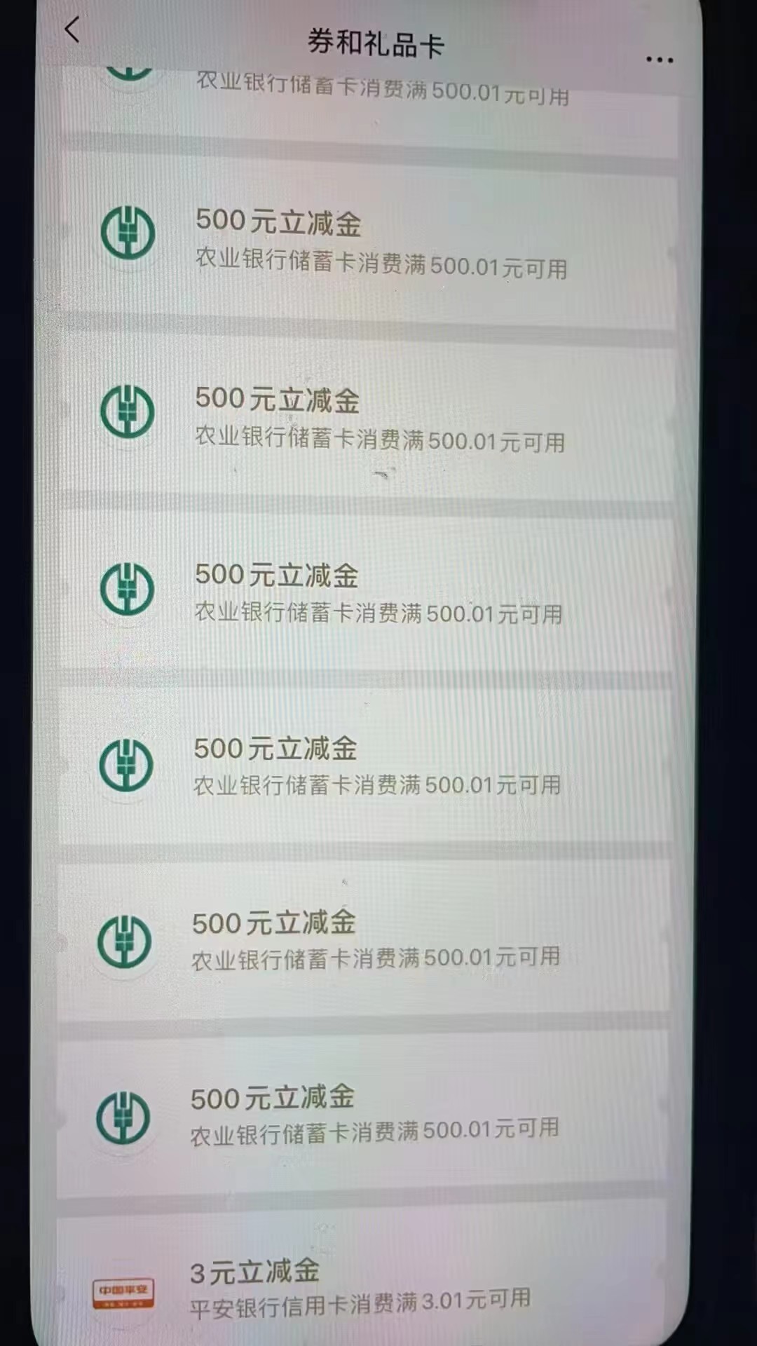 1、农行存500万得1万立减金,大家应该都有500万吧