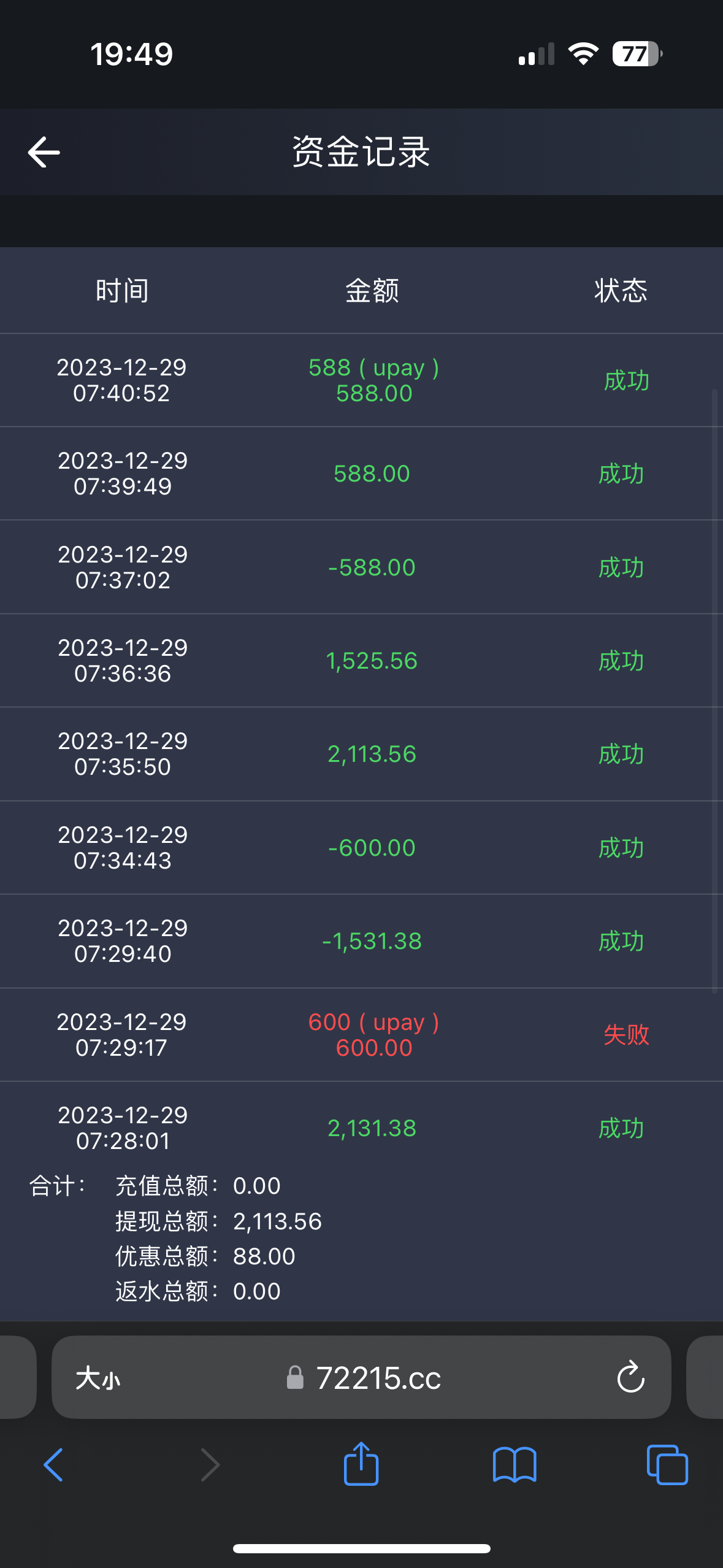 aaa501455 散比台格局不是很大.送了88赢了2100扣我1500.开始说100起体.然后又是最高588