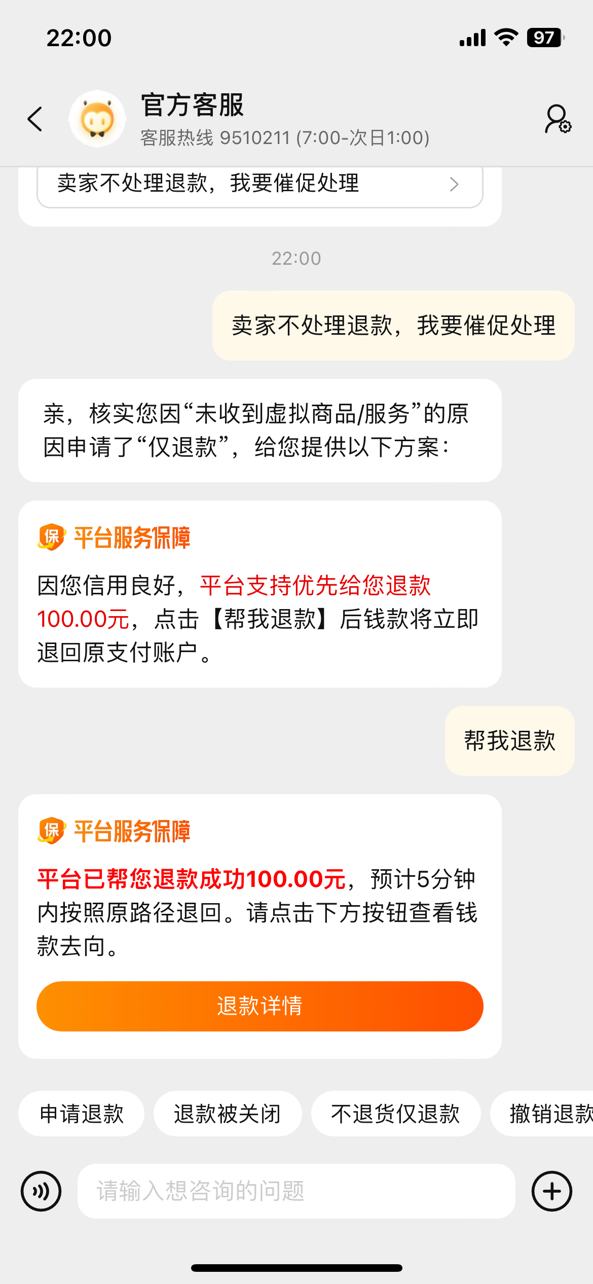 淘宝牛逼秒退款成功