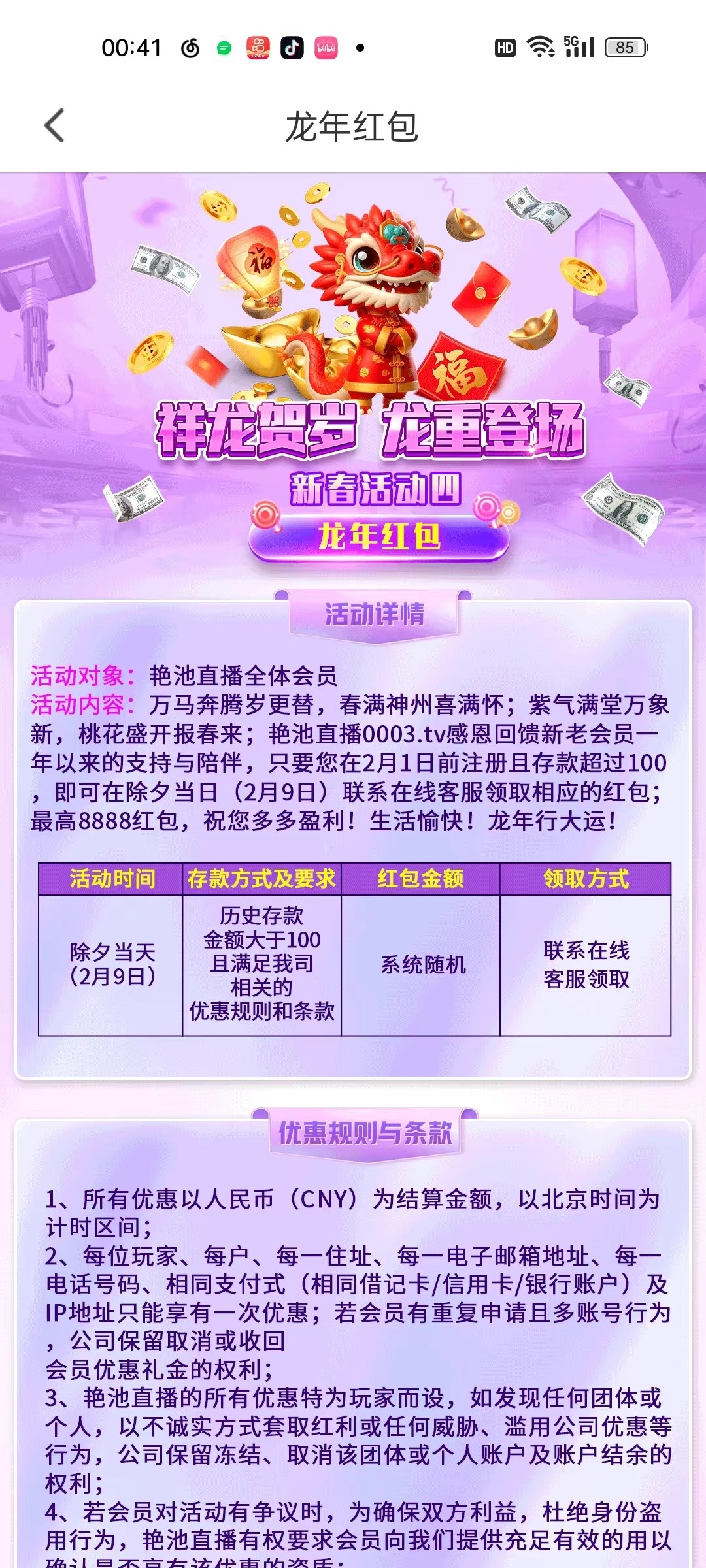 直接找在线客服领取龙年红包就行了,出款自测