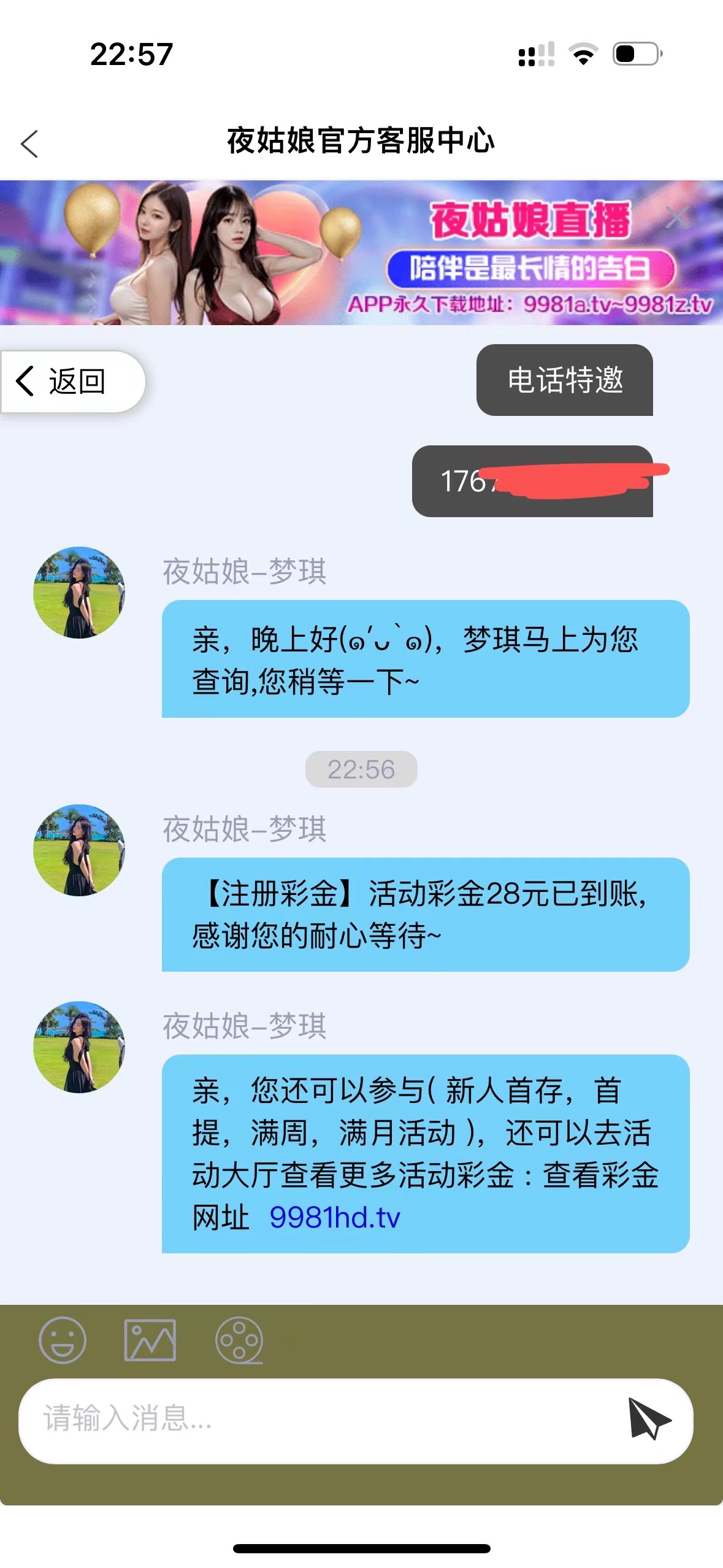 昨天我也接到电话,送了28白嫖100