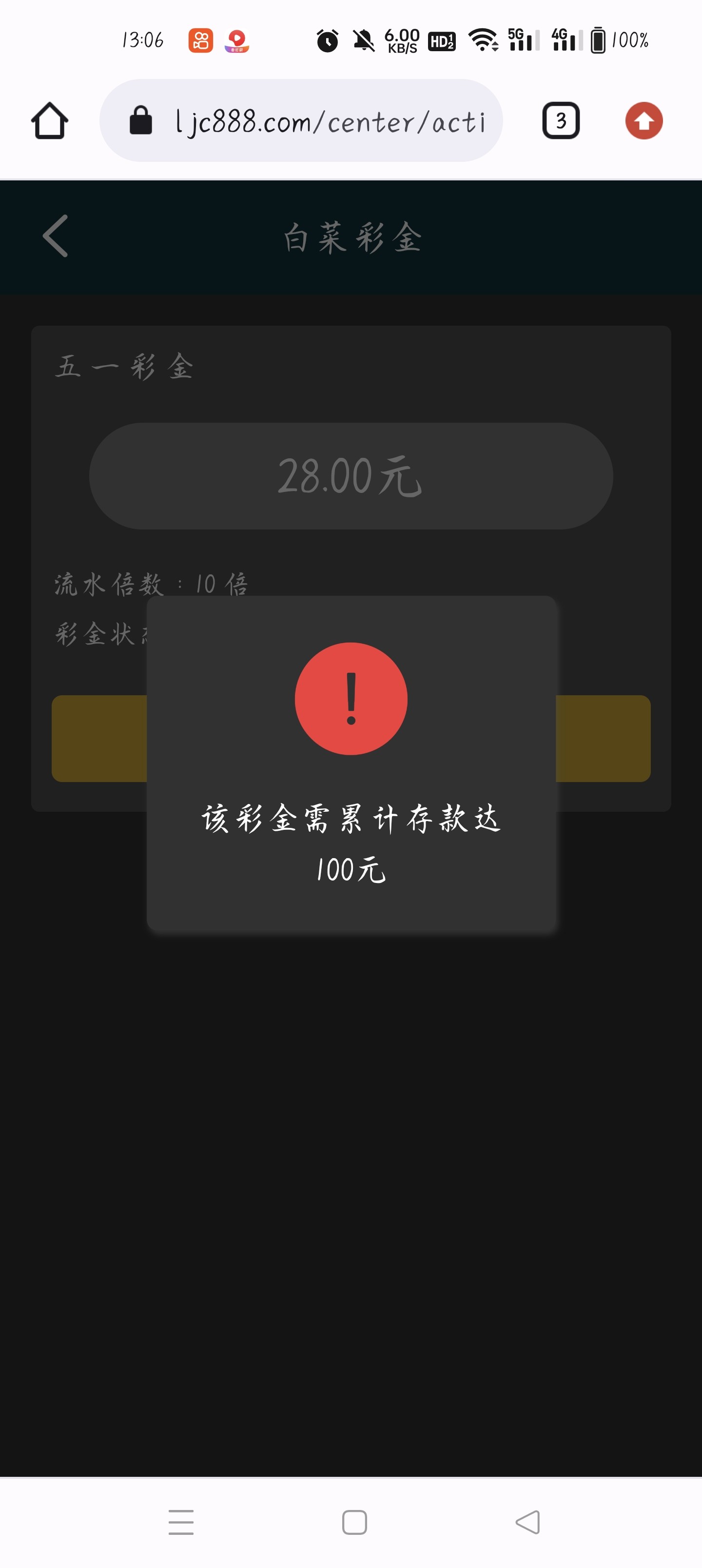 要充值100才能领取