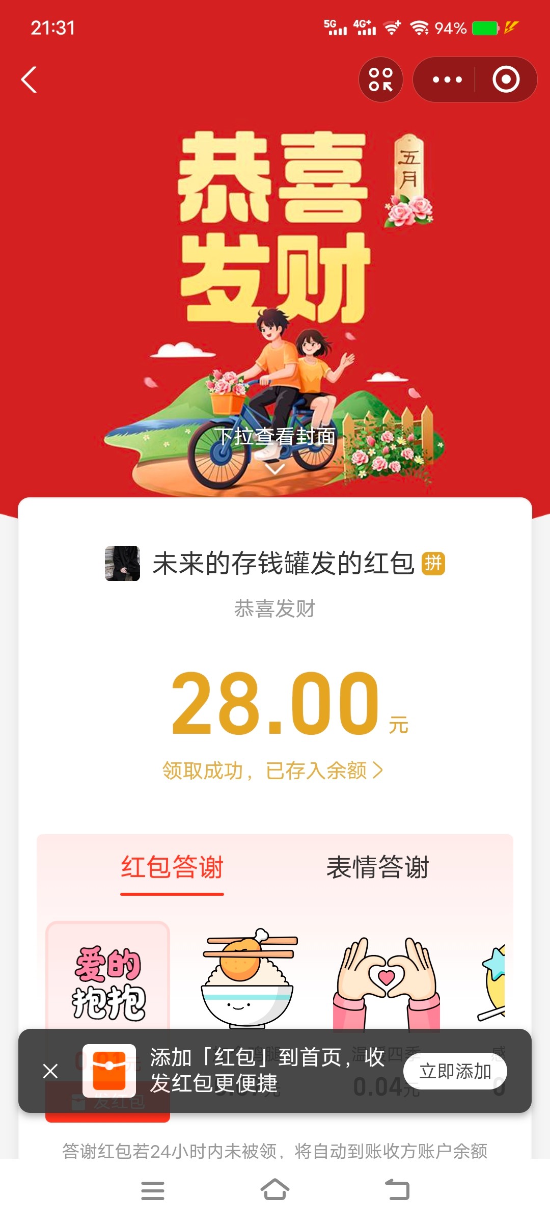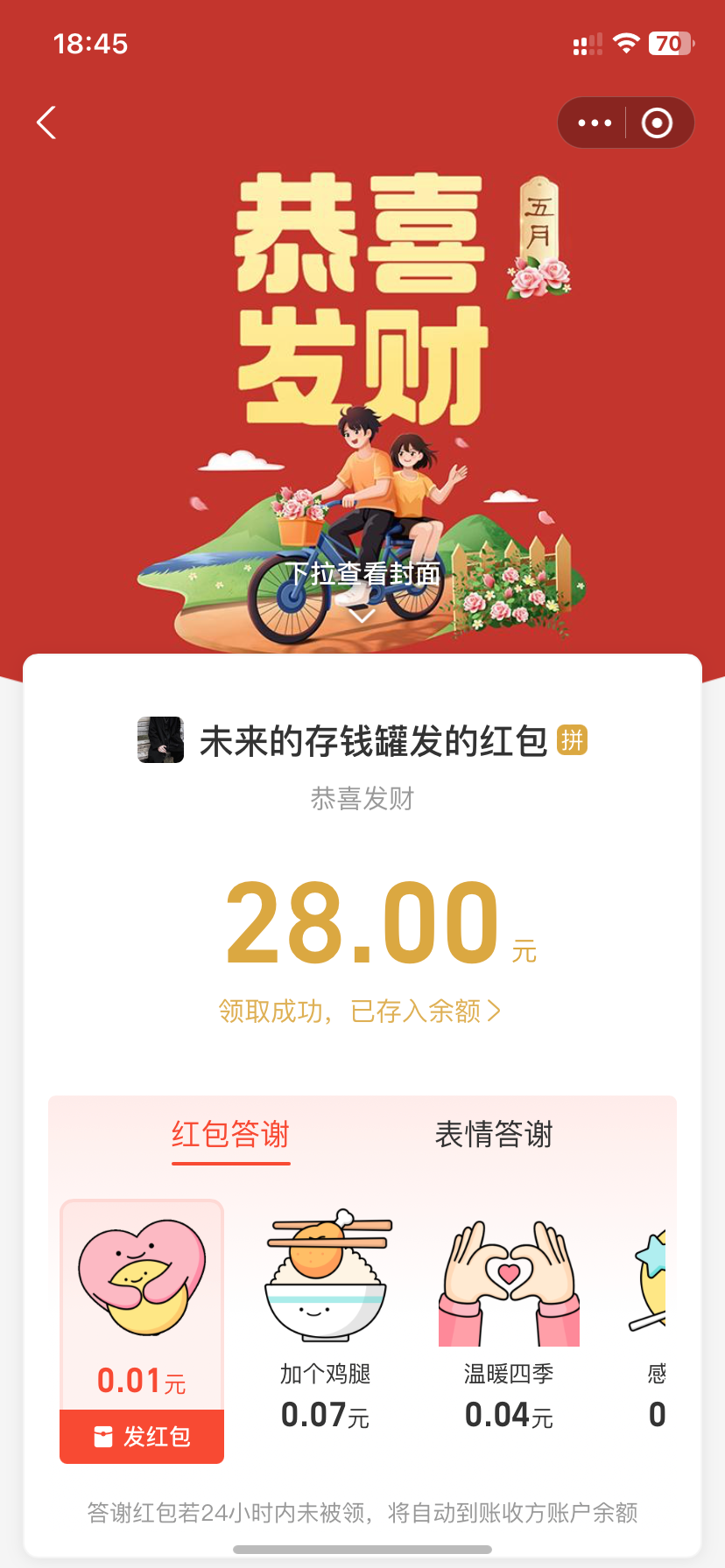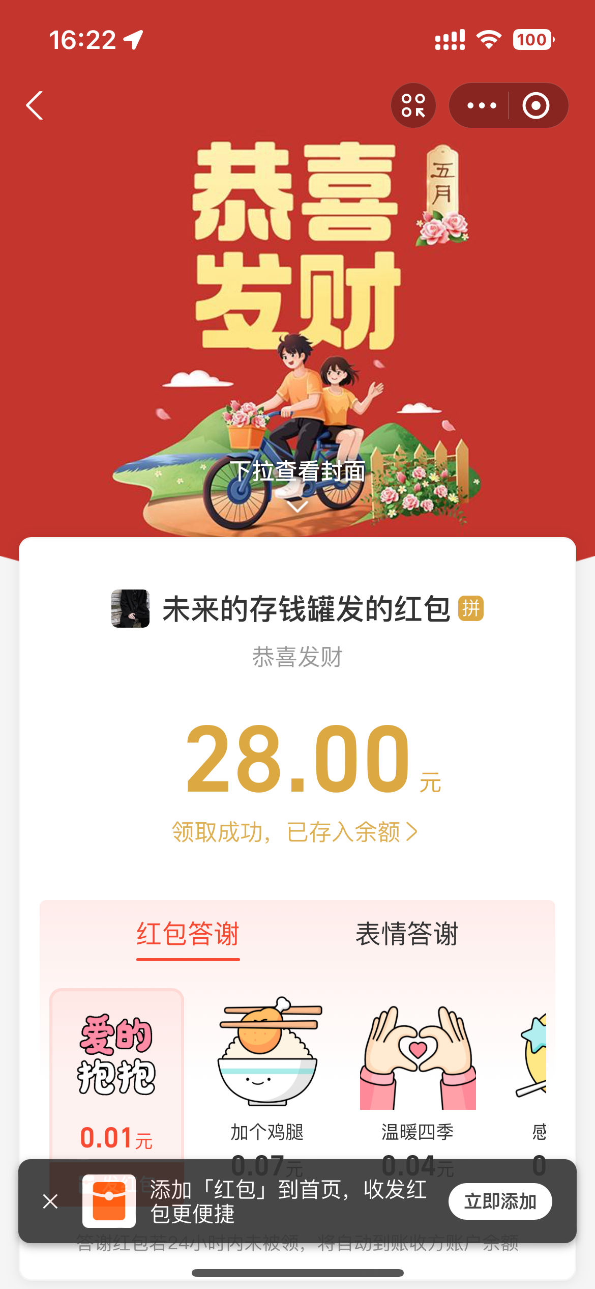 领到了,感谢