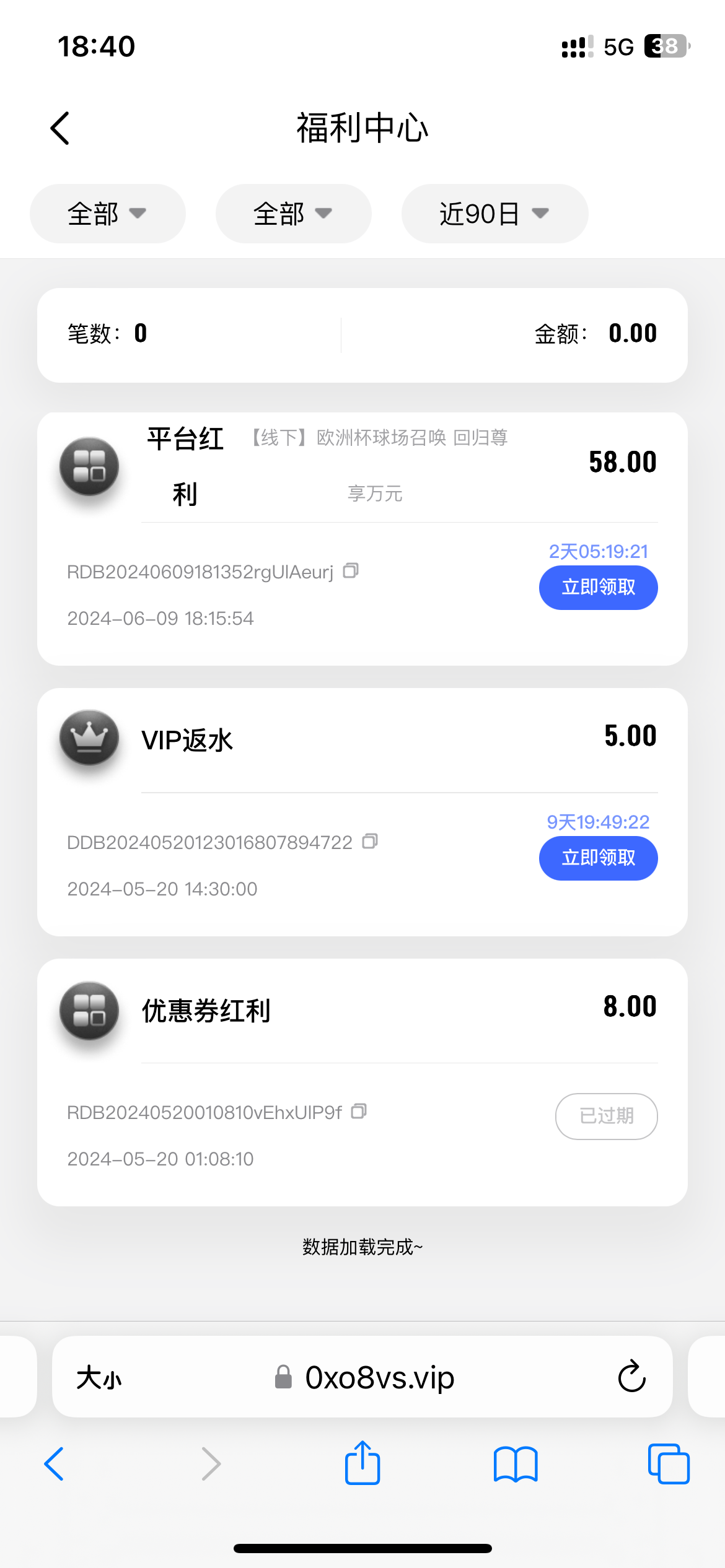 九游回馈领彩金58元