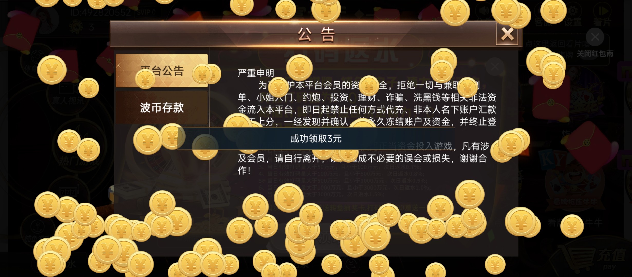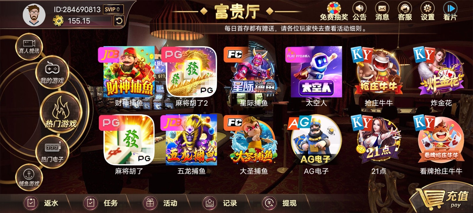 很简单,下载这个台app然后打开点弹窗红包其他不用管直接去pg打,没打出来的安卓手机自带一个应用分身,分身一下接着打,再没打出来的应用商店下载一个悟空分身看几个广告能领2小时会员无限开分身够打的了。打出来的号绑手机号跟银行卡然后再绑(okpay  topay  gopay   波币钱包)四个钱包其中一个,我跟我朋友出的两个钱包一个是波币一个okpay都是几分钟到账好像是系统自动打款