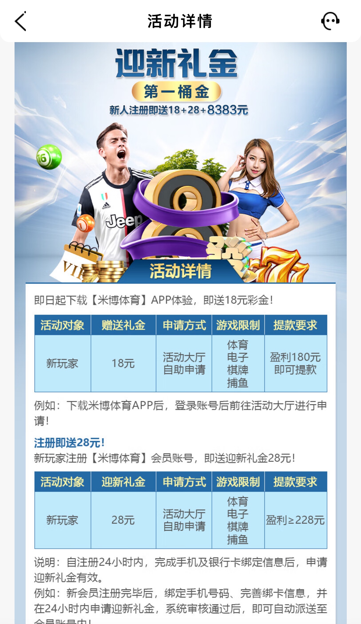 8383.com新用户先注册账号,再下载App,绑定银行卡和手机号码再去优惠大厅申请,我上次申请到了,没打出来死真人去了,我的已经是老号了,里面那个等级非常低,很容易晋级