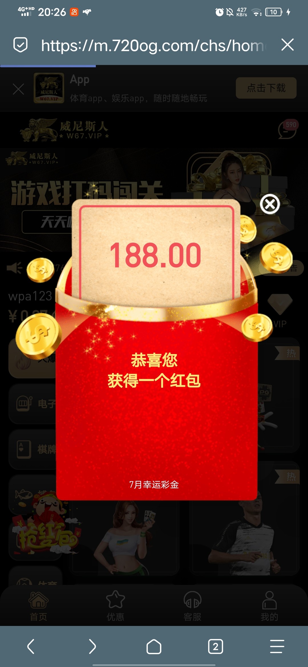 老用户登录彩金,我登上就有