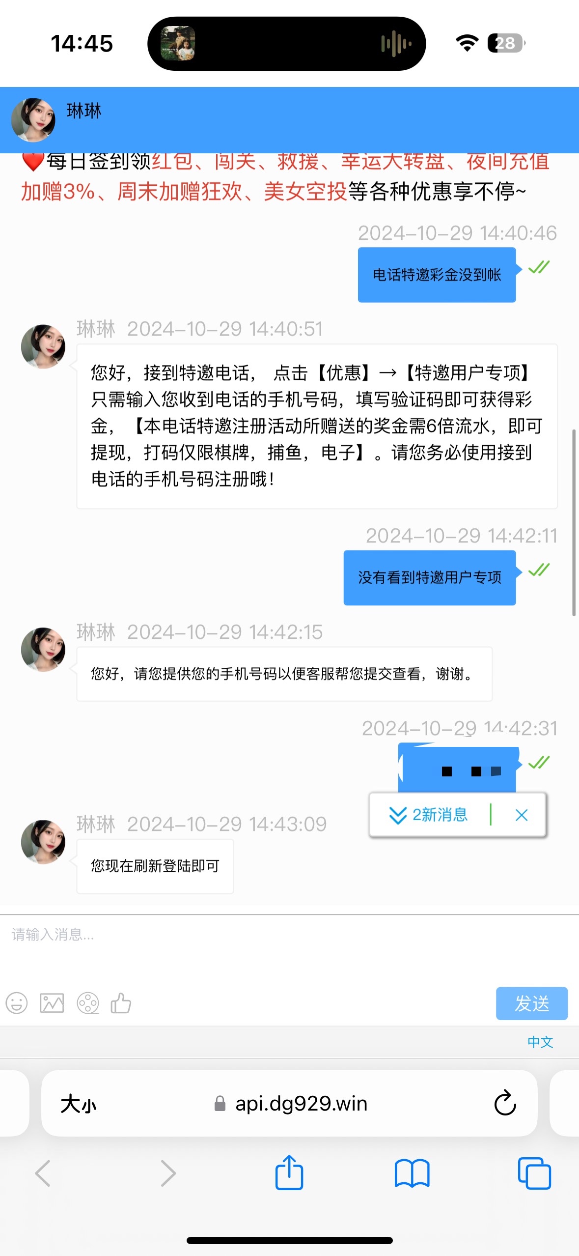收到短信,去找客服说充值才送