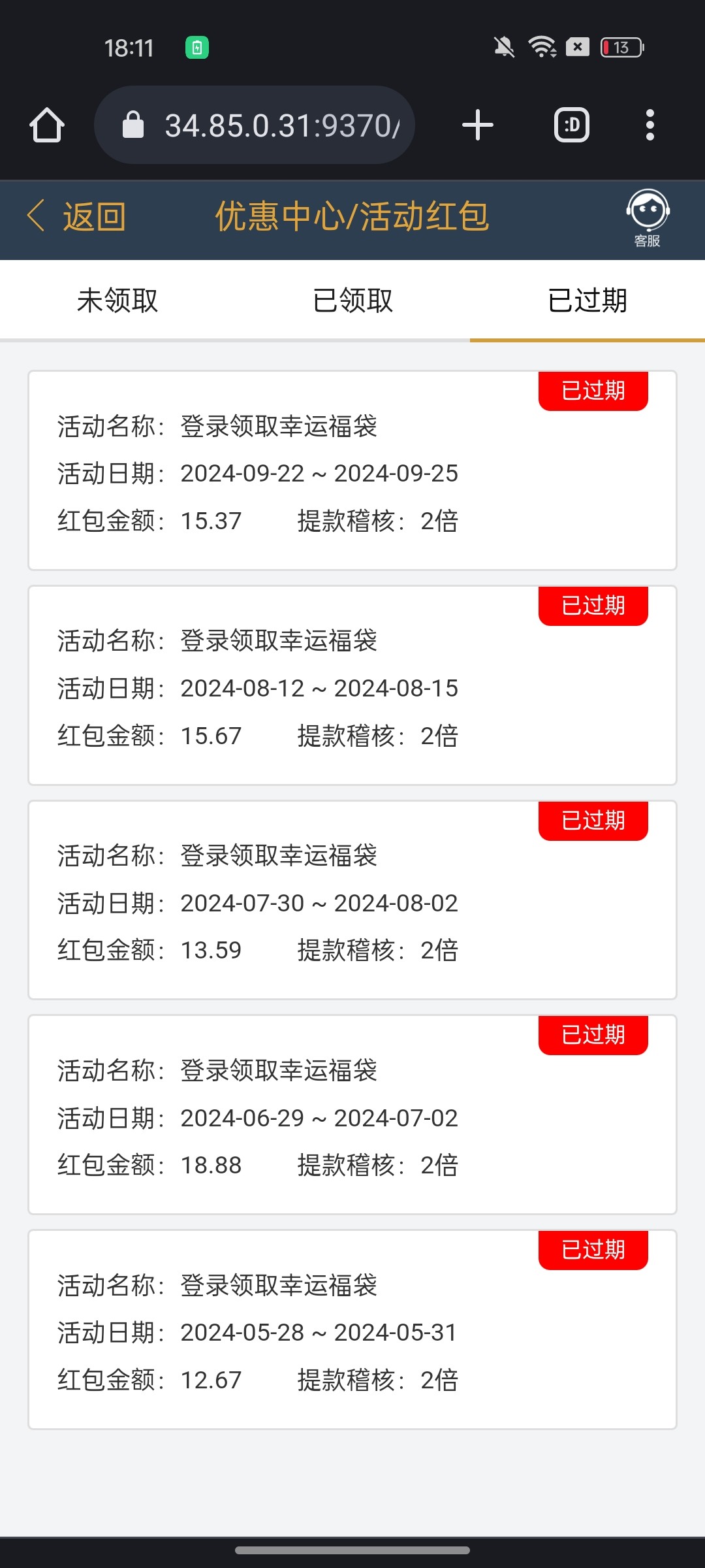 有个鸡儿,天天登录毛都没有。等你不登陆隔断时间再看看就是过期。垃圾网站