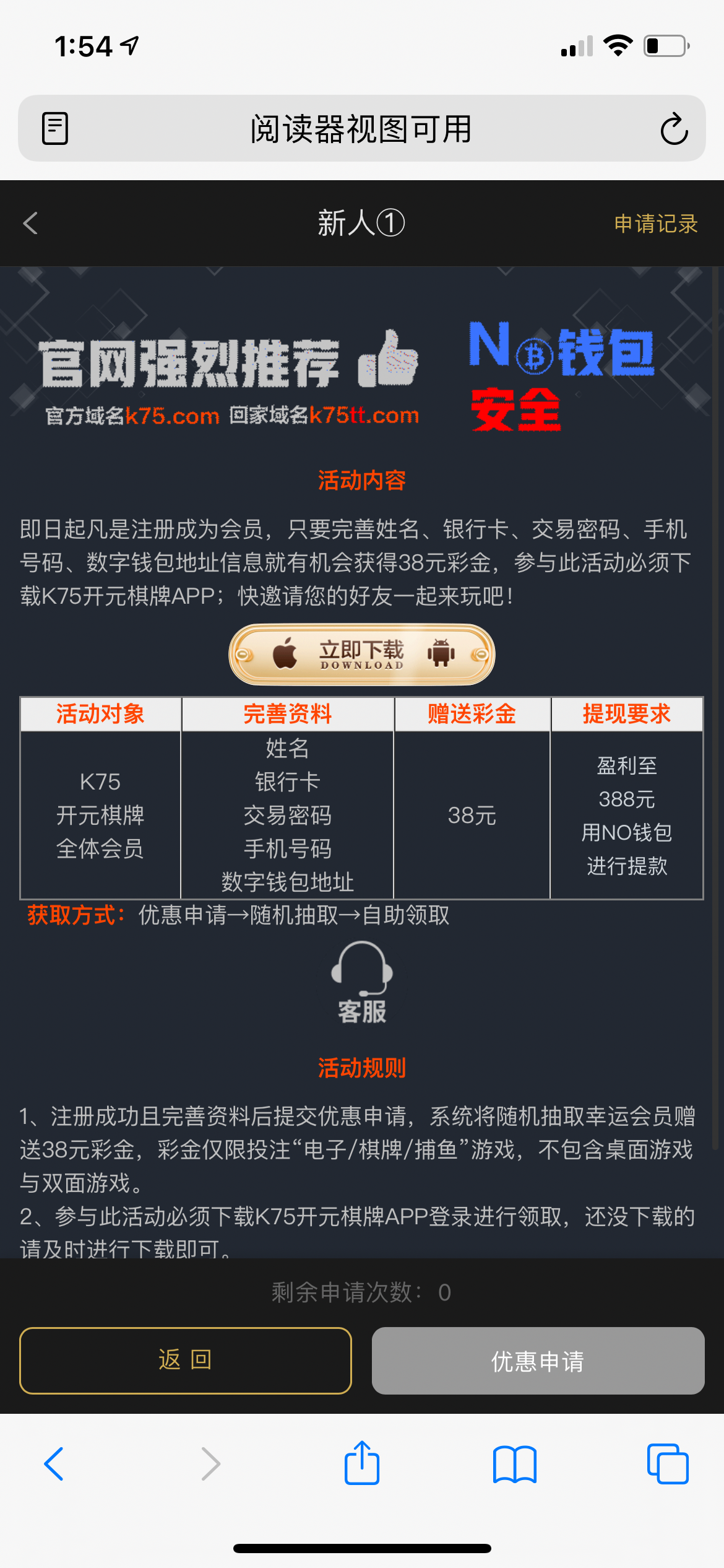 注册申请领38彩金 网站自己看。能不能过我也不知道 自己申请 不过别喷