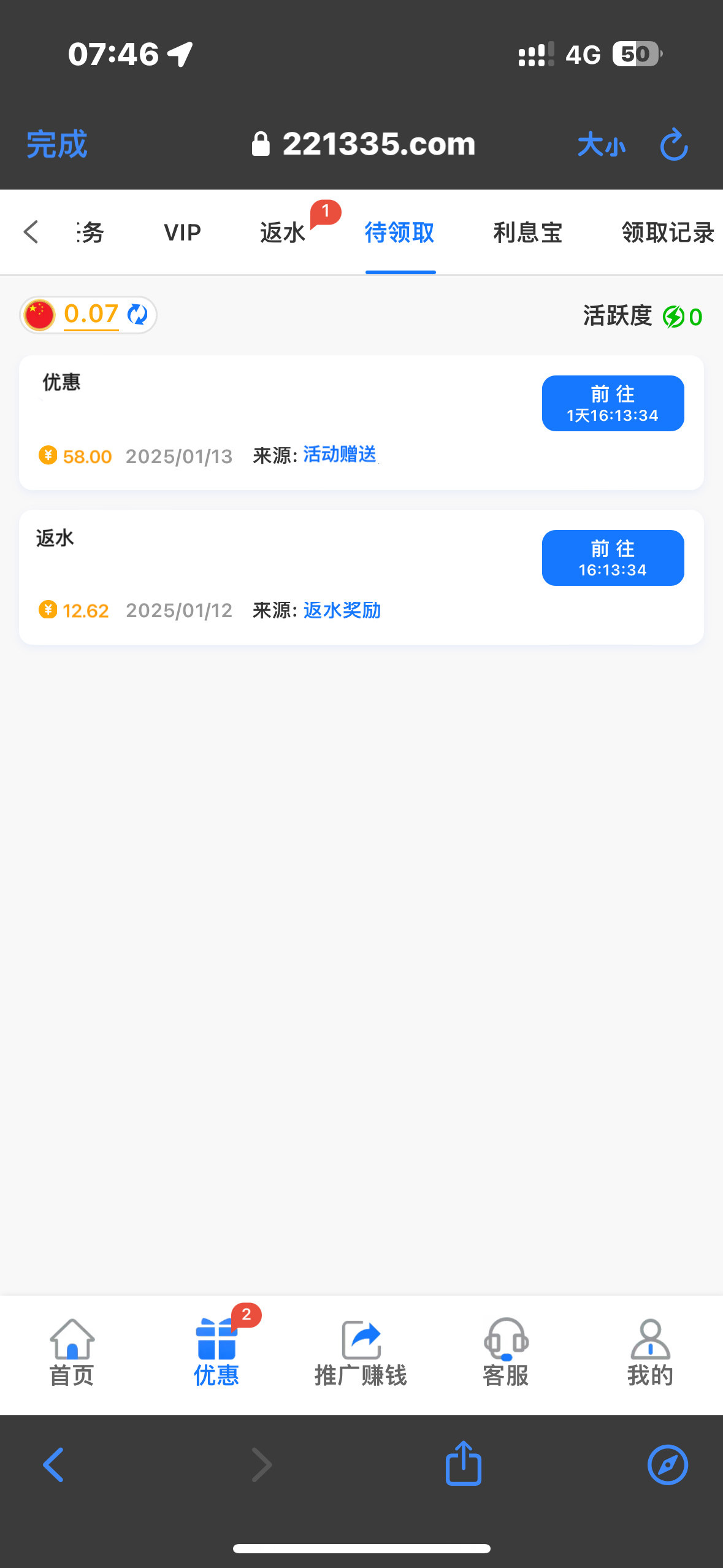 不知道啥彩金,昨天打了一个50+50存送刚才上号看见有58待领取 有号看看去