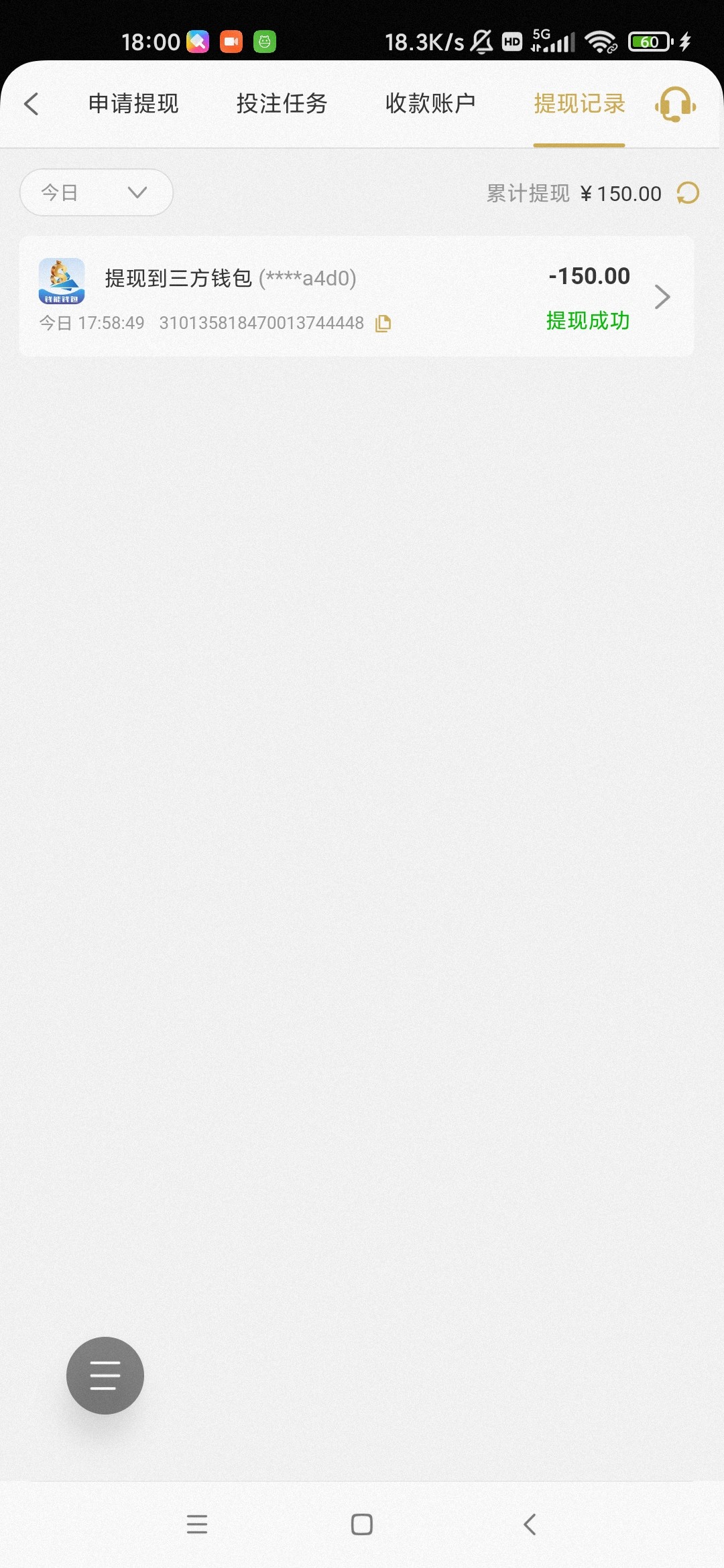 充值 50 五分钟上到 160 提现秒到了