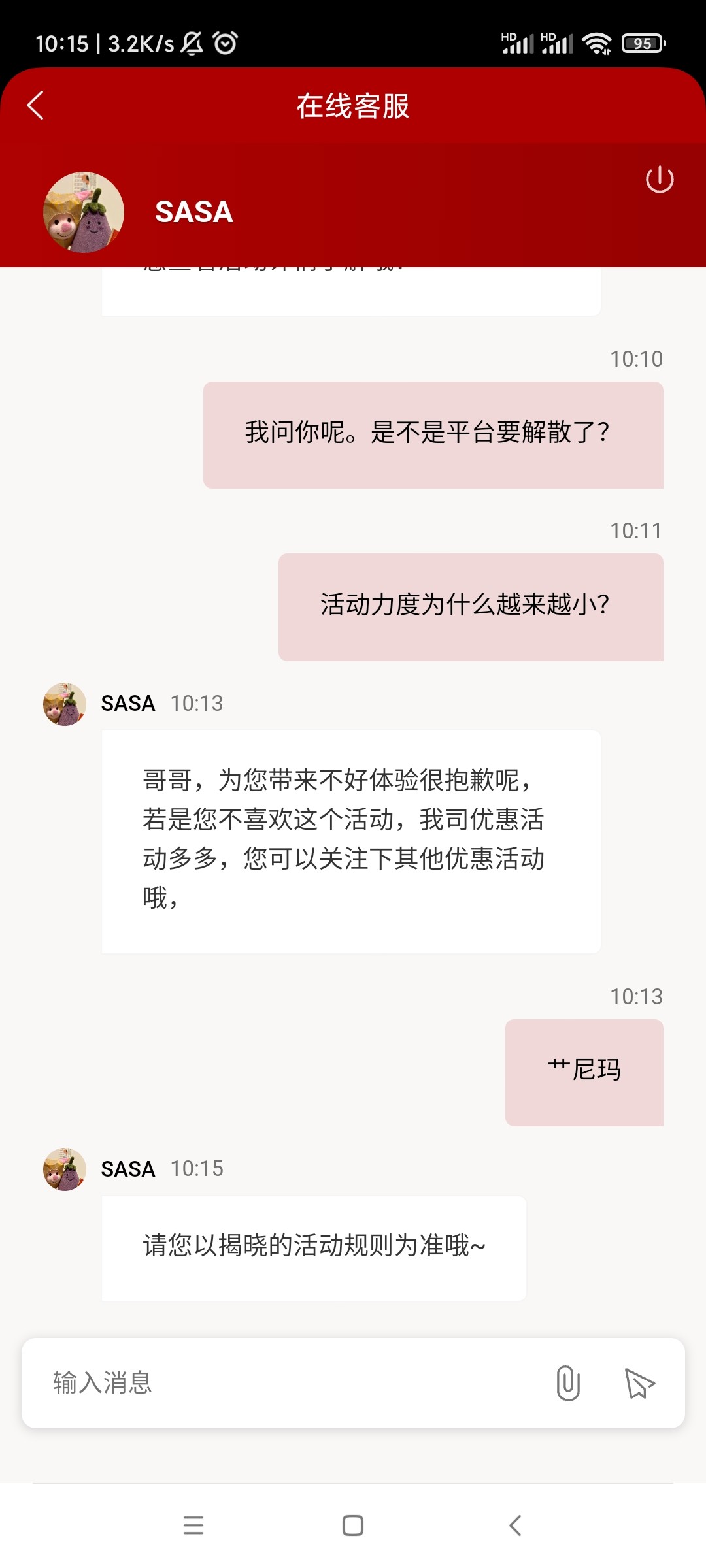 ch2589 都去骂啊,找990那个幸运女神反馈,骂就行了,990是超速系列老大每次活动都是他先出其他再出,只找990一个台就行了,这个平台不改基本废了5/1。