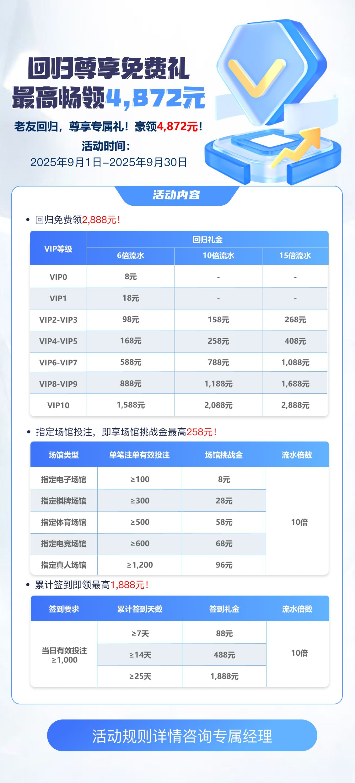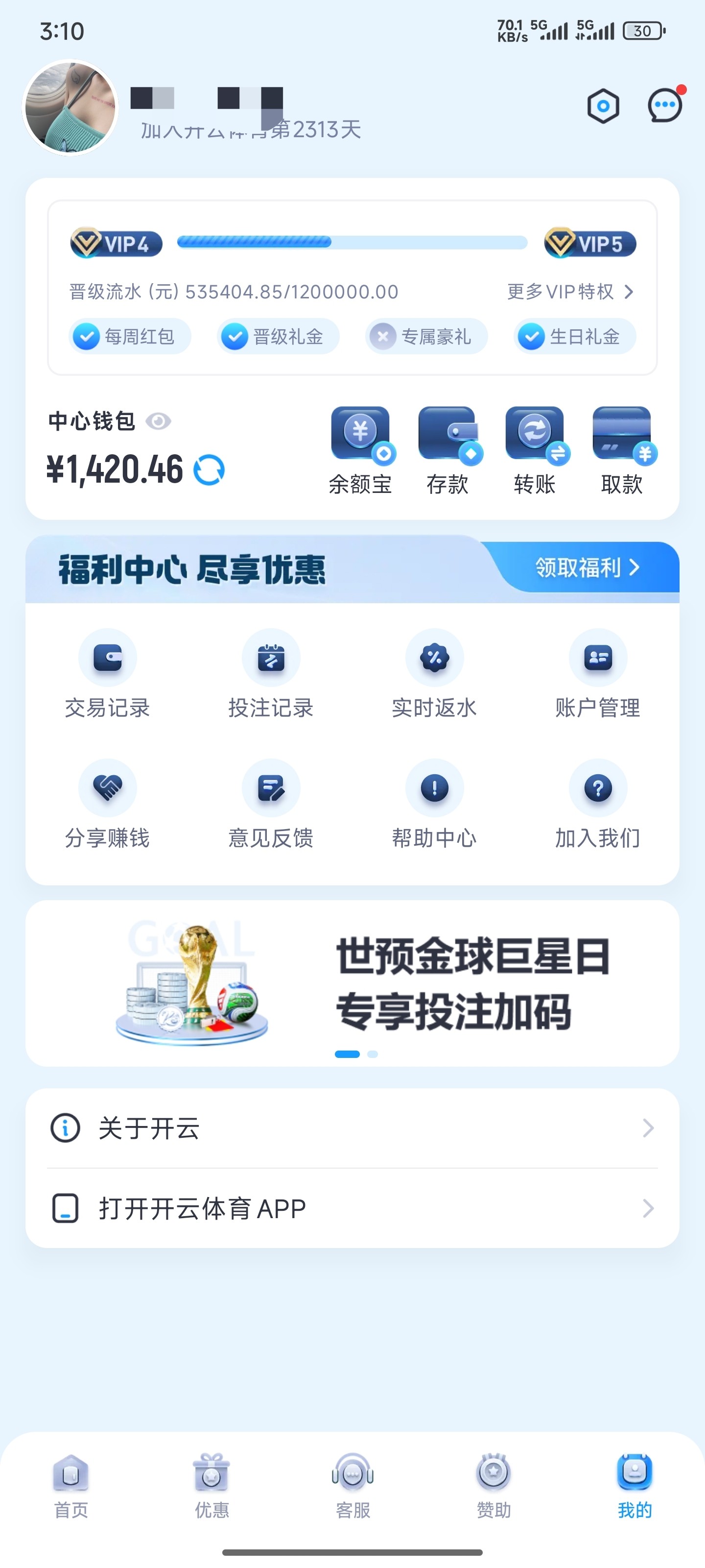 【开云体育火热持续与您共享】这个活动,没有领取到的,还有30天没存款的,可以去问客服经理,问他账号还有什么活动,如果有回归活动 就可以领取vip等级相对应彩金,我领取了408,已经出款1224账号里面还有1400+
