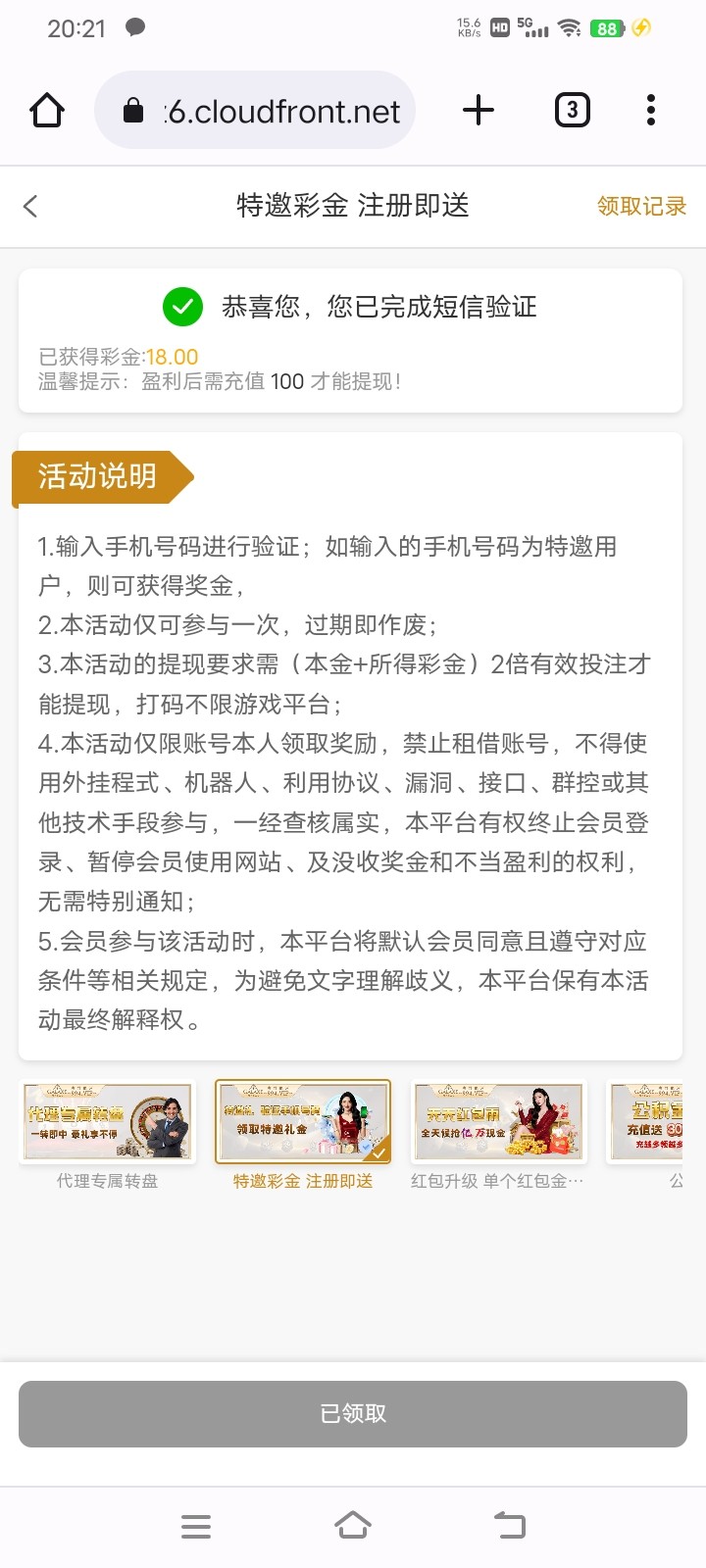短信特邀出款要充值100我没打出来