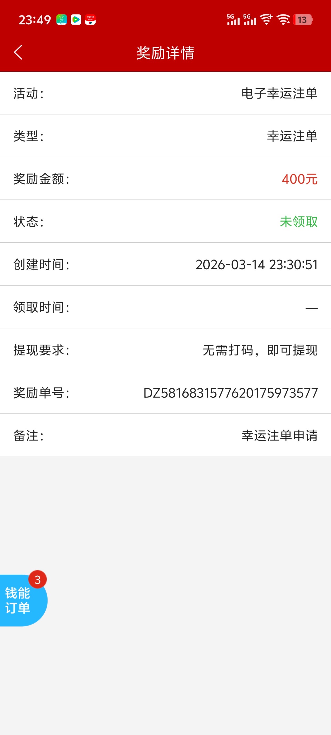才400,没啥吧,捕鱼有时候一两千的幸运注单,三四百常有的事。没啥稀奇
