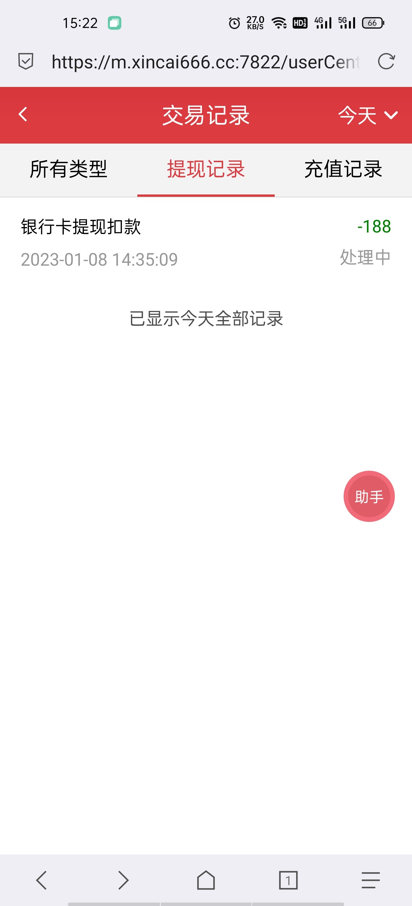 https://m.xincai666.cc黑台,打电话给我说送彩金,送了100,说5倍流水,最高提现188,首充100+100,2倍,结果我把100打出来了,提现一个小时不到账,问客服不回直接拉黑窗口,然后账号也直接被冻结了,回都不回直接拉黑,黑台一个