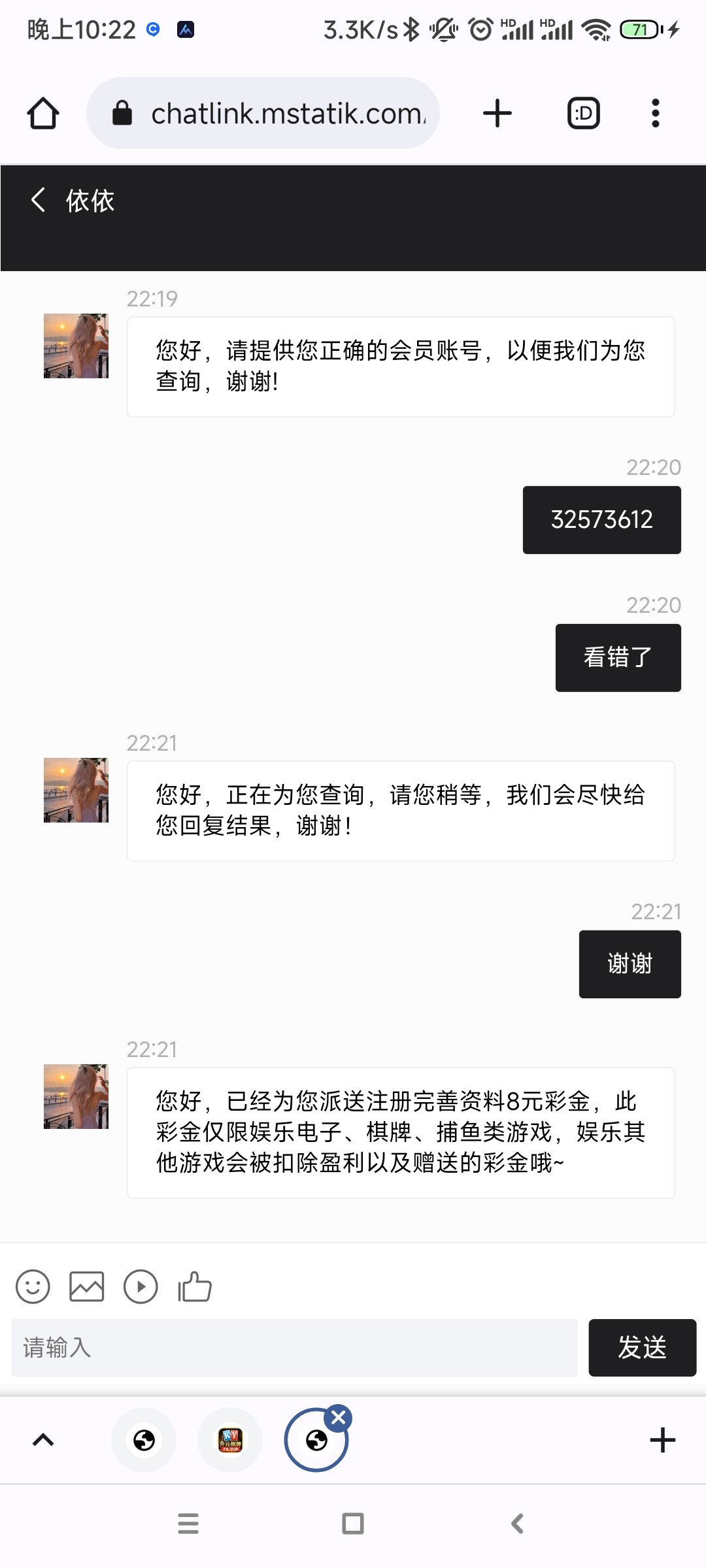 自己看一下时间还在送,两个客服都不送就是你ip问题
