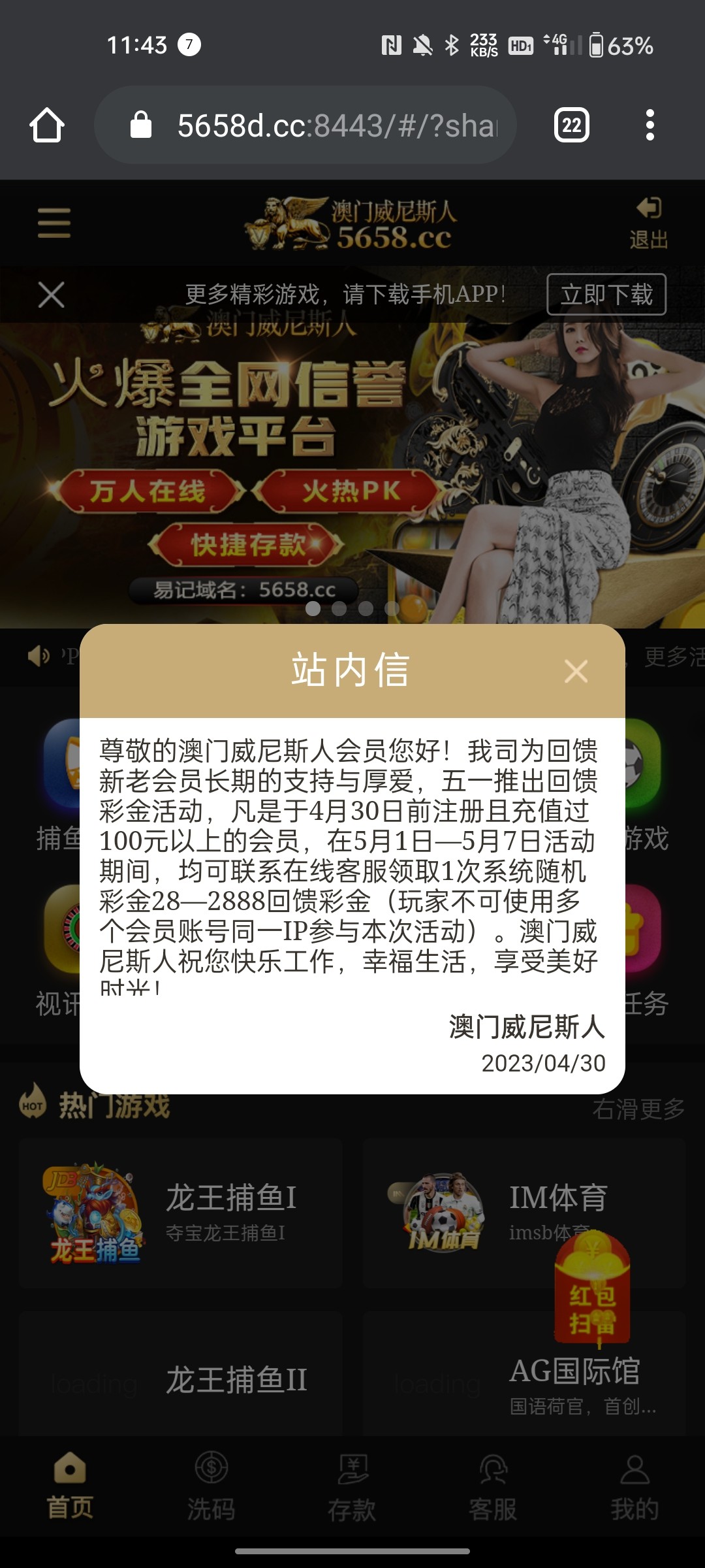 开元模板威尼斯人5658充过回馈,我充过100,回馈了38,有号的老哥去看一下